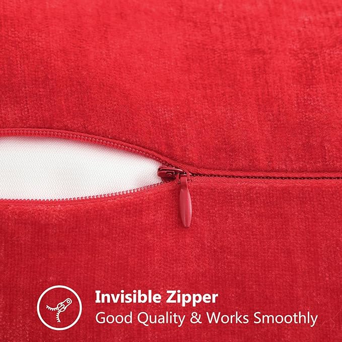 decorUhome Chenille Soft Throw Pillow Covers 18x18 Set of 2, Farmhouse Velvet Neutral Decorative Euro Pillow Covers with Stitched Edge for Couch Sofa Bed Home Decor, Red