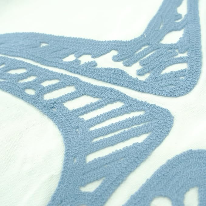 Embroidered Decorative Throw Pillow Cover, 18"x18" Set of 2, Farmhouse Pillowcase Blue Sea Star Knit Pattern Cotton Canvas Cushion Case Square Floral Pillow Case for Sofa Couch Bed Living Room
