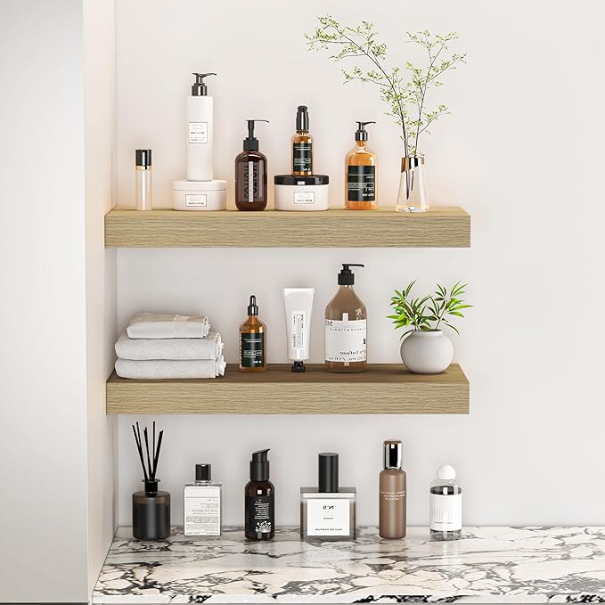 - Rustic & Modern Wooden Floating Shelves - Our shelf is made of durable engineered wood with a natural wood grain finish for a rustic feel. Matte surface makes it modern and minimalist look. It can be mounted and decorated on every wall of your home, perfect for various scenes, whether display your collection or storage.