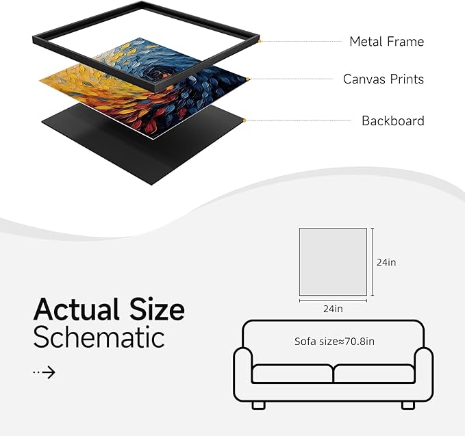 - [Framed Wall Art]: This framed modern abstract wall art measures 24x24 inches. Each painting with a solid, rust-resistant, simple and stylish black frame that blends in perfectly with a variety of decor styles.