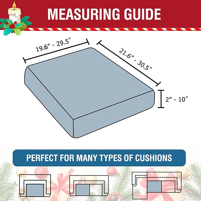 - GREAT FIT: Set of 1. This innovated cushion slipcover is crafted from durable and soft high stretch thick fleece fabric. Chair Seat Cover(fit total sitting area between 19.6-29.5 inches). Feature one-size-fits-most, kindly measure before ordering. Suitable for both T cushion and Box cushion styles