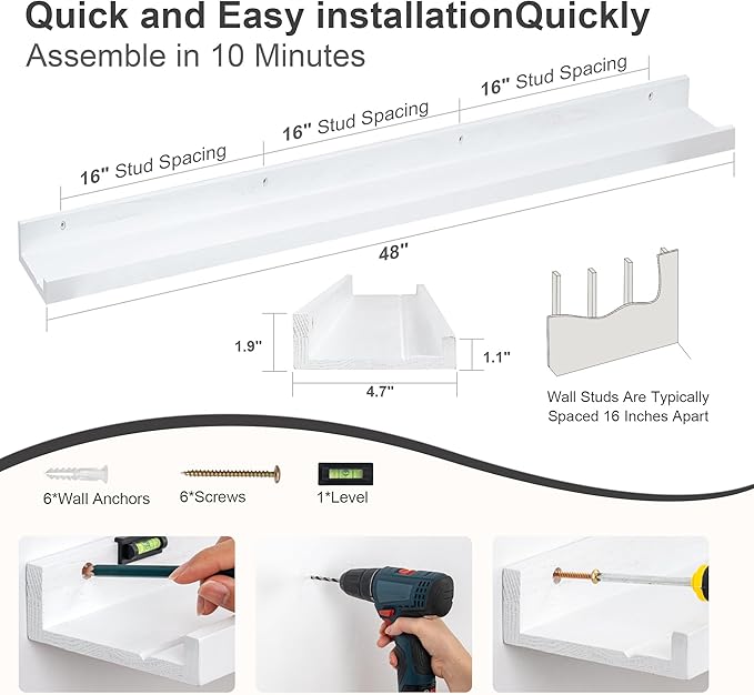• Multi-Functional: Get creative and find more functions other than the long picture ledge shelf. FLYJOE storage ledge shelves can act as a kids' bookshelf, display shelf for collectibles figures, and more.