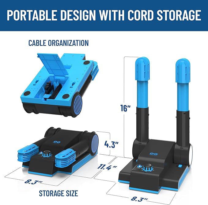 Foldable & Compact Boot Dryer & Boot Warmer with Timer, Fast 2-Hour Drying, Heavy-Duty Shoe Dryer for Work Boots, Sneakers, Gloves, Helmets & more – 2 Tube Design Everlasting Comfort