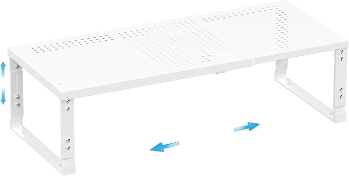 - ⭐【Expandable,Stackable】The shelves can easily expand and contract according to your storage needs, whether it is kitchen clutter or office supplies.You can combine multiple shelves together to form a large storage system, or separate them into several separate smaller units(Measure:8.11"D x 16.54"W~27.17"W x 8.31"H/7.68"H/7.05"H/6.42"H)