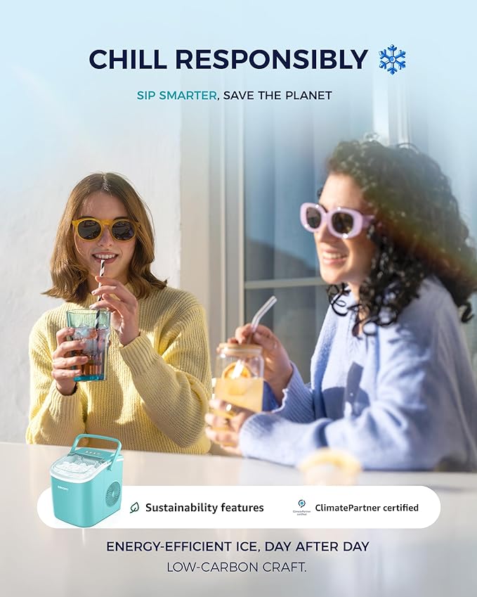 - Smart Operation & Self-Cleaning: The ice maker has advanced infrared sensor. The "ICE FULL" indicator flashes remind you to take out ice to prevent overflowing when the basket is full. And it'll remind you to add water by flashing "ADD WATER". Additionlly, the compact ice maker has a one-touch auto-cleaning function. Press the “ON/OFF” for 5s after adding water to run automatic mode for 30mins. Just get a clean ice maker without washing it by yourself