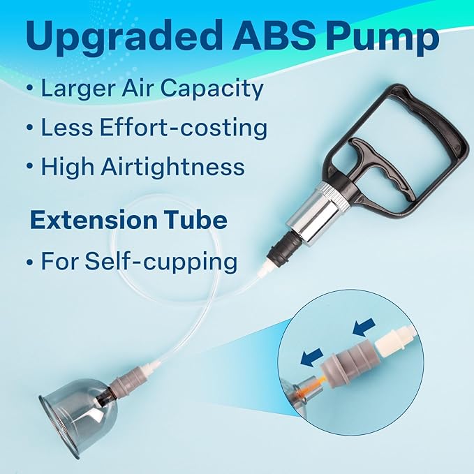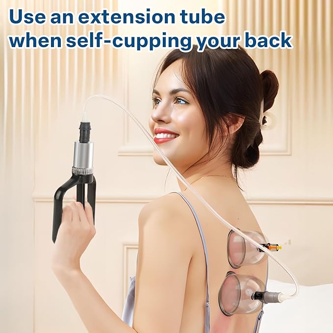 - Features: 26.58-inch extension tube for self-application, durable ABS plastic hand pump, and 6 removable bio-magnetic points for enhanced magnetic cupping therapy. The special U-shaped joint cup is designed for better adaptation to elbows and knees, ensuring better contact and stability
