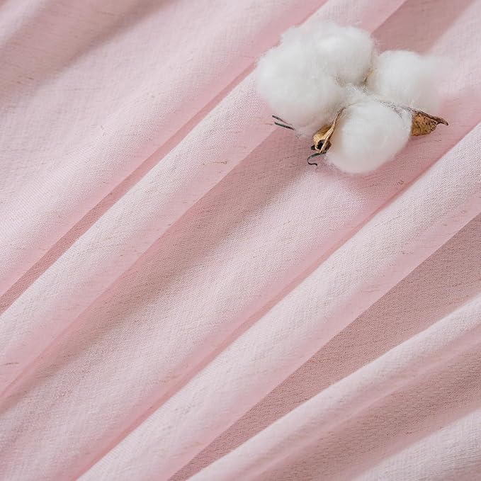 FMFUNCTEX Linen Sheer Curtains for Bedroom, Pink Curtains 84 inches Long for Living Room, Blush Pink Farmhouse French Flax Blend Window Draperies, Rod Pocket 2 Panels Set