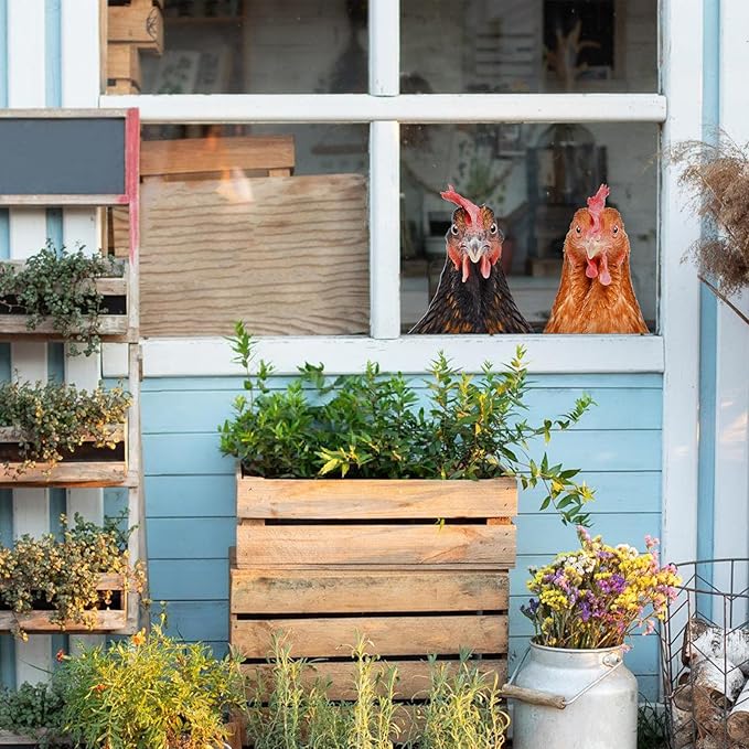 Funny Chicken Wall Stickers Peel and Stick - 2 Hens Heads Window Stickers Decor - Funny Wall Decals Removable for Farmhouse Kitchen Bedroom Door Refrigerator Car