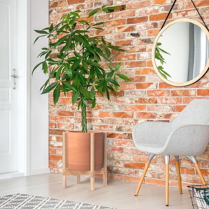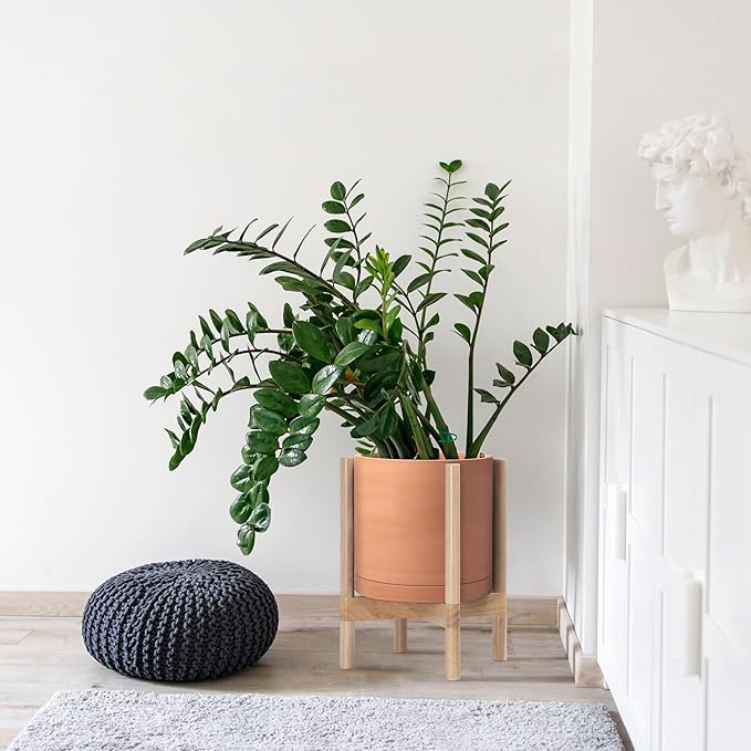 - A Complete Set: Mid-century terracotta planter, combined with a natural color, sculptural, solid wood stand that match perfectly together and looks great in anywhere.
