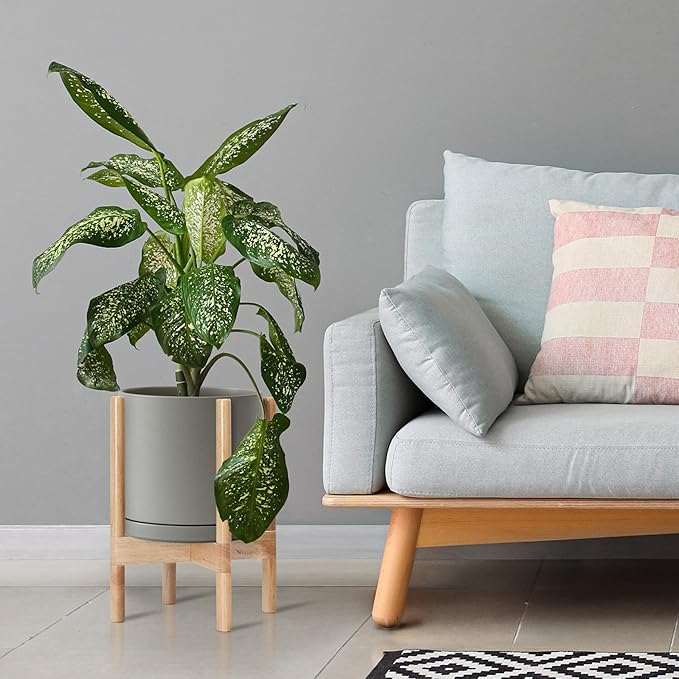 - A Complete Set: Mid-century ceramic planter, combined with a natural color, sculptural, solid wood stand that match perfectly together and looks great in anywhere.