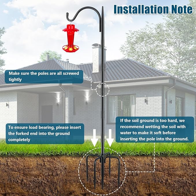 - Adjustable Height: The small shepherds hooks are available in 2 sizes, 47 in and 63 in, suitable for different garden space layout needs. Specifically, the 47-inch model can be adjusted down to 31 inches by removing one 16-inch pole section, while the 63-inch model can be adjusted to 47 inches or 31 inches by removing 1 or 2 sections respectively