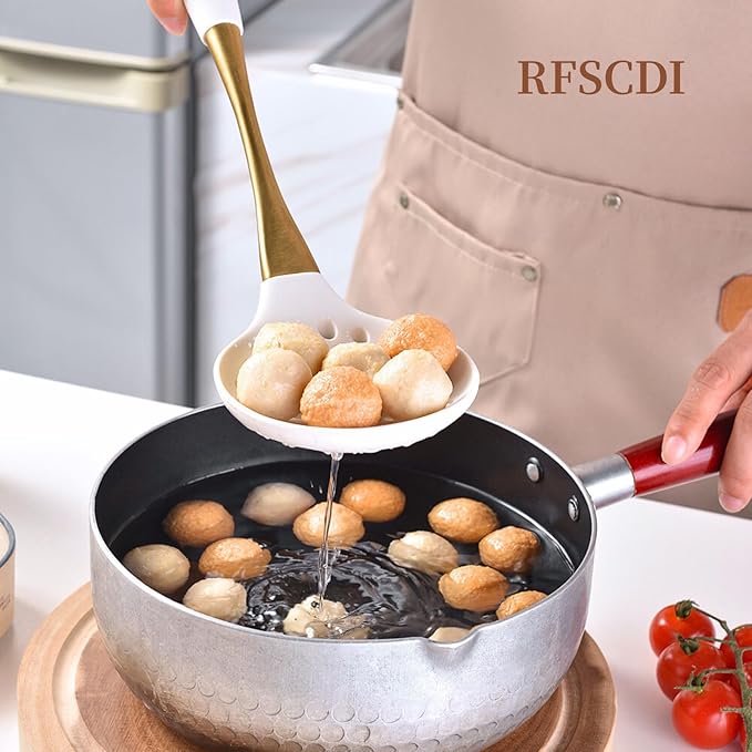 - ★【Chic and Elegant Design】: Featuring a stunning white and gold color scheme, complemented by Smoothly curved stainless steel handle, this set adds a touch of sophistication and style to your kitchen decor.