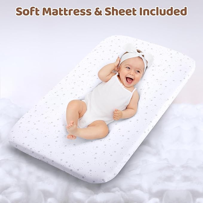 - 【3 in 1 Multipurpose Bassinet】 It is a versatile baby bassinet that serves as a bedside co-sleeper, rocking bassinet, and standalone crib. The baby bassinet saves space and money while providing flexibility for different needs.