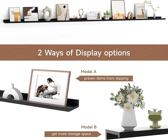 - MEMORIES SHOWCASE SHELF: Do you have a lot of memorable photos, but don't know how to display them, Fun Memories picture ledge shelves (especially in large sizes) are perfect for you to display them! With our hanging racks, you can store and display different types and sizes of photo frames in one place without worrying about