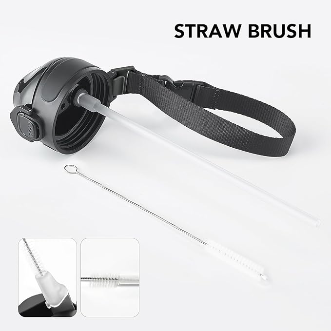 - Humanized Design: The one-hand operation button allows for easy access to water. Highly suitable for boys and girls, and all ages. The flip-top lid of the insulated bottle is used a secure lock, making it dust-free and leak-proof. The included straw brush makes maintaining your bottle's cleanliness uncomplicated and efficient.