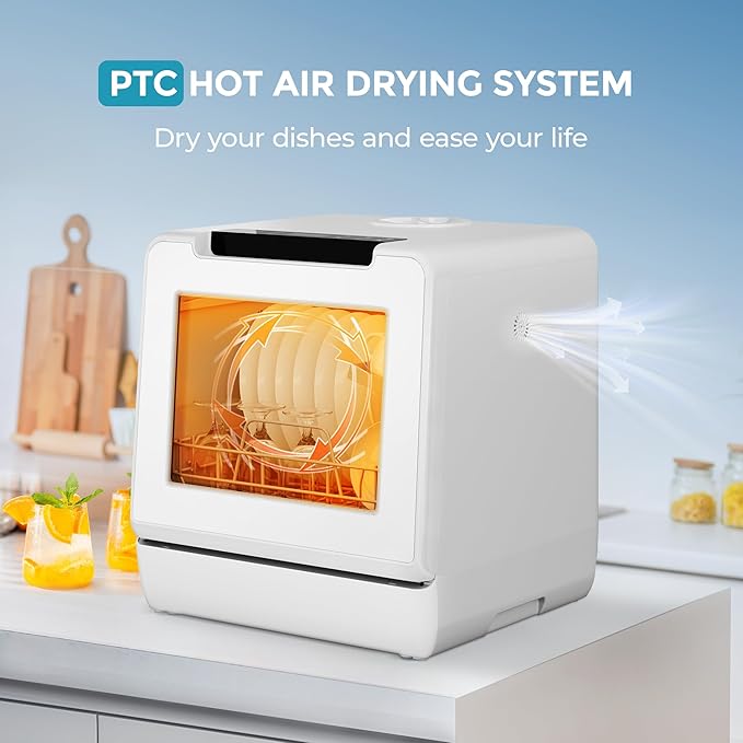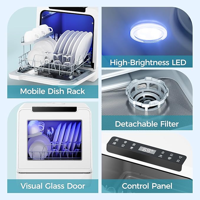 EUHOMY Portable Dishwasher Countertop Dishwashers, 8 Programs Mini Dishwasher, 5L Built-in Water Tank and Inlet hose, Self Clean, Baby Care, Air Dry Function, for Apartments & RVs, No Hookup Needed