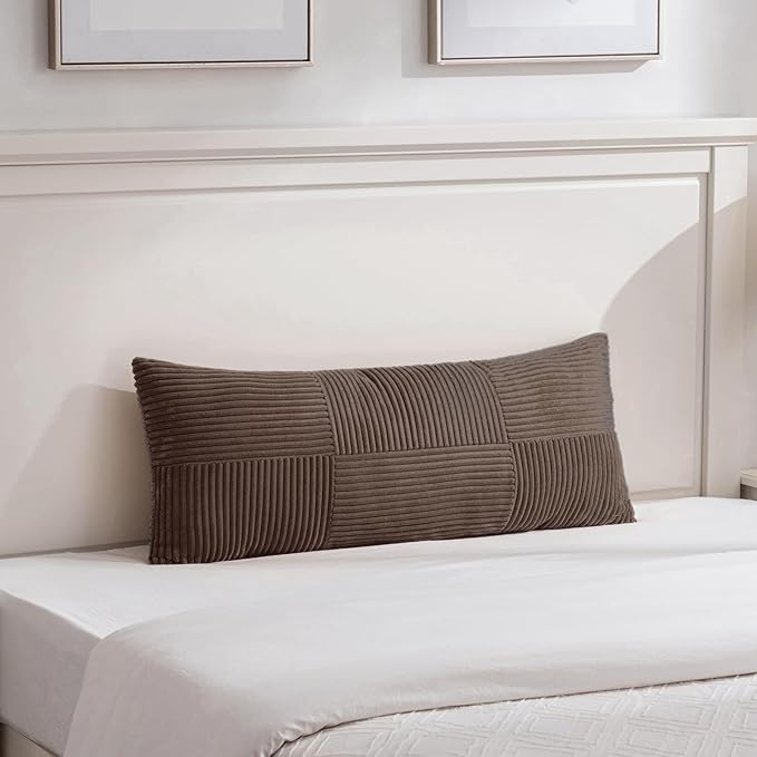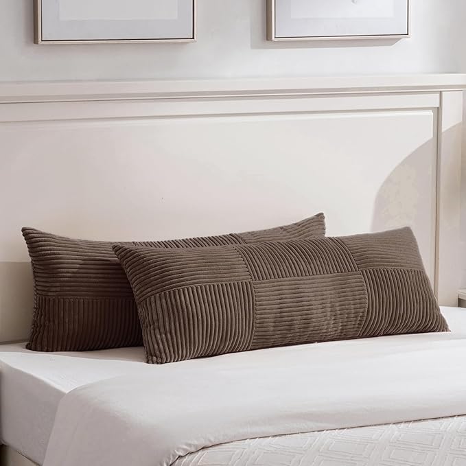 Fancy Homi Set of 2 Dark Brown Boho Long Lumbar Body Decorative Throw Pillow Cover 14x36 Inch for Bed Couch Bedroom Bench, Soft Patchwork Corduroy Textured Pillow Case, Rustic Farmhouse Room Décor