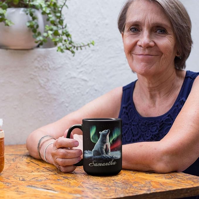 - 💝【UNIQUELY PERSONALIZED】Experience the magic of the Arctic with this Custom Enchanted Arctic Landscape Design Cup. Featuring an adorable polar bear beneath the captivating northern lights, this black ceramic mug gift for nature lovers and animal enthusiasts. Click "Customize Now" to add a name and create a unique mug gift for her. Available in 11oz and 15oz sizes, this personalized mug is a unique keepsake that will be cherished for years to come.