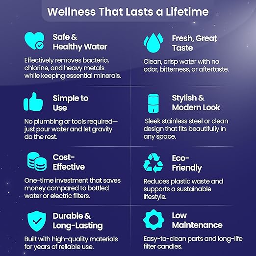 - 𝐄𝐜𝐨-𝐅𝐫𝐢𝐞𝐧𝐝𝐥𝐲, 𝐄𝐜𝐨𝐧𝐨𝐦𝐢𝐜𝐚𝐥 & 𝐍𝐨𝐧-𝐄𝐥𝐞𝐜𝐭𝐫𝐢𝐜 – Say goodbye to bottled water with this reusable water filter system. This home water filtration system works without tools or electricity, saving you money and reducing waste.