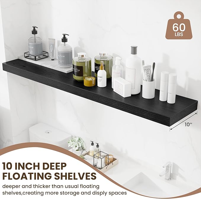 - STYLISH & PRACTICAL: These 10-inch deep floating shelves offer a simple rustic charm and are made from permium engineered wood. With their smooth, natural finish, they add warmth and personality to any room, fitting seamlessly into both modern and classic interiors
