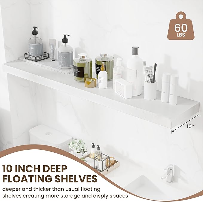 - STYLISH & PRACTICAL: These 10-inch deep floating shelves offer a simple rustic charm and are made from permium engineered wood. With their smooth, natural finish, they add warmth and personality to any room, fitting seamlessly into both modern and classic interiors