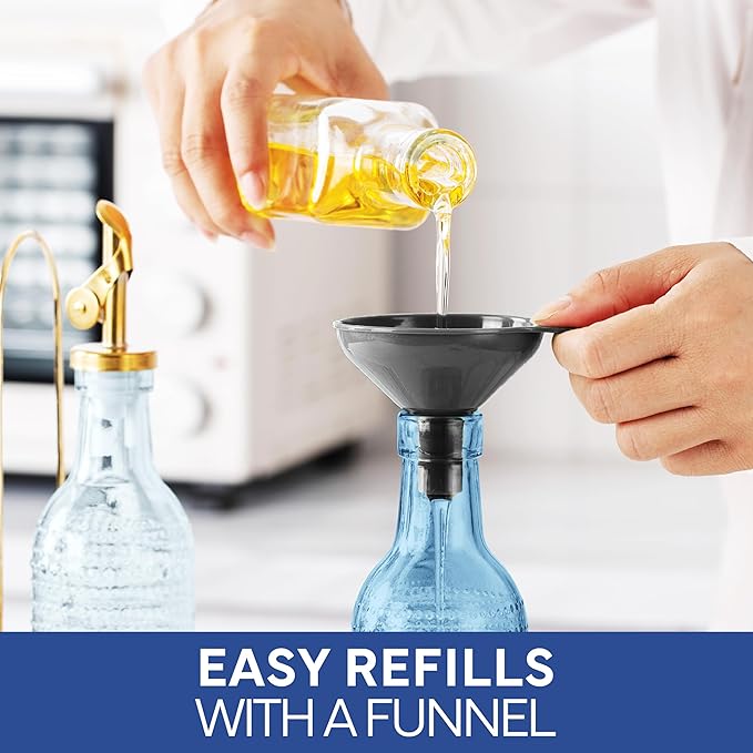 - Perfect Amount - Each bottle holds 500ml or 17oz of a variety of oils and vinegars. From your favorite EVOO, avocado oil, balsamic vinegar dispenser and more.