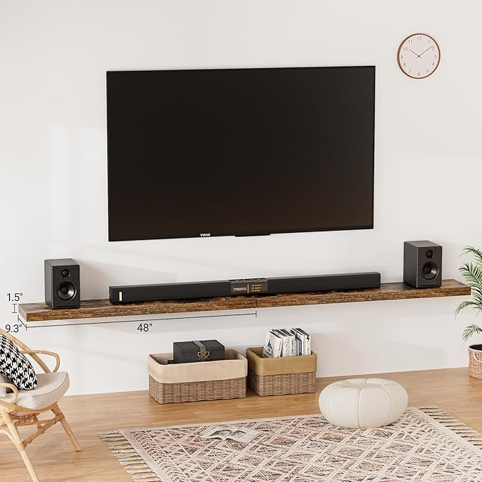 - 【Longer Design】Our pretty wall shelves are 48"W x 9.3"D x 1.5"H.Our brown floating shelves is longer than traditional designs and can hold more items.The rustic brown floating shelves optimize wall space,helping organize essentials without taking up floor space in your home.