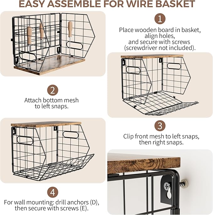 - 【Effortless 3-Minute Assembly】Our stackable wire baskets require no tools-just fold,snap together,and secure with the included screwdriver.Perfect for pantry organizers or kitchen countertop storage,ready to use in minutes!