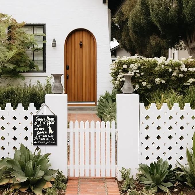 - Effortless Installation: Crazy dogs live here do not knock sign includes a rustic hemp cord hanger for quick mounting. No tools needed. Hang it anywhere indoors or outdoors in seconds!