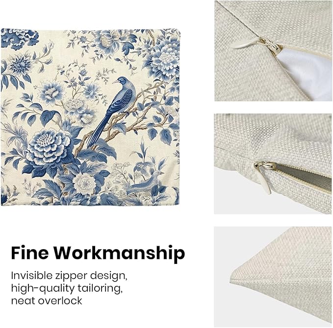 - 【Square Pillow Covers Size】 Chinoiserie flower birds pillow case set includes 2 pcs of farmhouse couch pillow covers (NO Pillow). Home decor farmhouse pillow covers measures 16x16 inch/ 40x40 cm. All the floral decor throw pillow covers have a hidden zipper. It is easy to insert or remove the pillow core to replace the spring pillowcase. Easy to clean and wash, sturdy and not easy to damage.