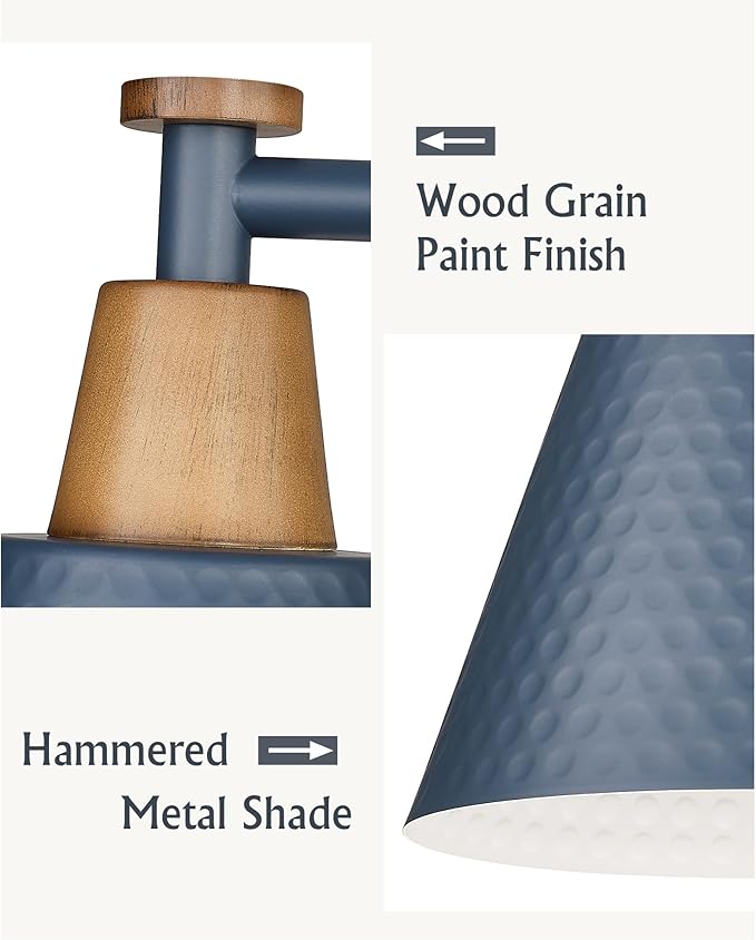 - Classic Blue Elegance – The FEMILA bathroom vanity light features a striking blue finish and a finely crafted hammered metal shade, combining vintage charm with modern sophistication to enhance your space.