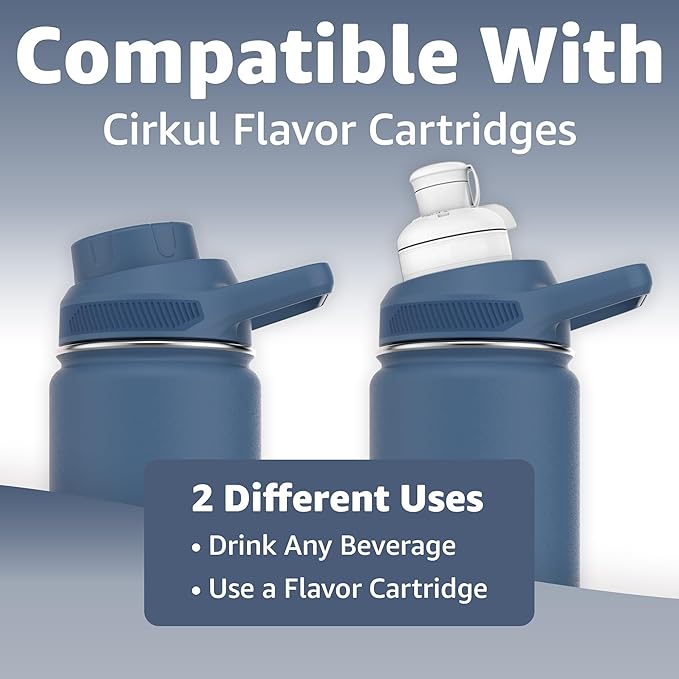 Chill Oasis Water Bottle | Compatible With Popular Flavor Cartridges | BPA Free, Leak Proof, Double-Walled Vacuum Insulated Stainless Steel, and Dishwasher Safe | Cold for 24 Hours (Navy, 32oz)