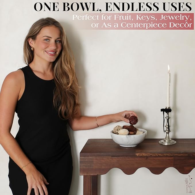 - A Stone Bowl Decorative Enough to Display: At 8" wide and 3" tall, this centerpiece bowl is the perfect size for just enough impact without taking over your space. You'll love how these marble bowls blend into your home decor, from entryway to nightstand