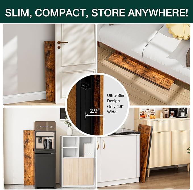 - πππ’πππ¦ ππππ§ πͺππ§π π¦π£πππ-π¦ππ©ππ‘π π¦π§π’π₯πππ β With a folded thickness of only 2.9 inches, this desk fits easily under beds or behind doors. Lightweight and compact, itβs perfect for small-space living or temporary setups like trade shows and pop-up workstations
