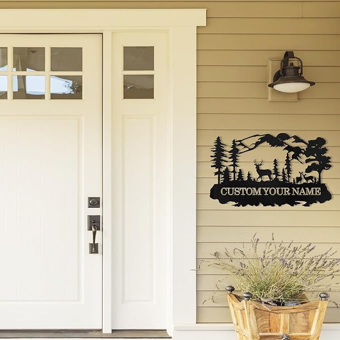 Custom Deer Metal Cabin Sign, Rustic Deer Wall Decor, Last Name Signs for Home, Custom Signs Outdoor Metal, Metal Wall Art, Hunting Decor, Hunter Gifts, Mountain Cabin Decor, Porch Sign