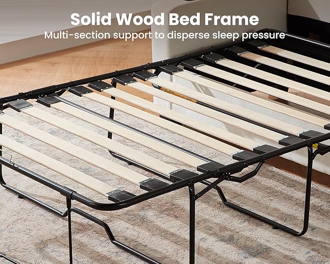 - 【Inner frame is Crafted of FSC-certified Solid Wood with Supportive Slat Design】The solid wood slat base ensures long-lasting strength and stability. Designed to relieve pressure while enhancing comfort, this frame supports a restful, relaxed experience, whether sitting or lying down. Enjoy support that’s built to last