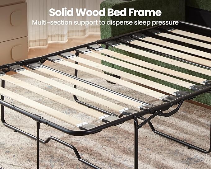 - 【Premium Chenille Fabric for Lasting Softness and Durability】Crafted with luxurious chenille fabric, this sofa bed offers a velvety, soft feel that’s perfect for long hours of relaxation. Unlike ordinary fabrics, chenille maintains its plush texture over time, delivering everyday comfort and superior durability. Feel the difference with every sit or nap