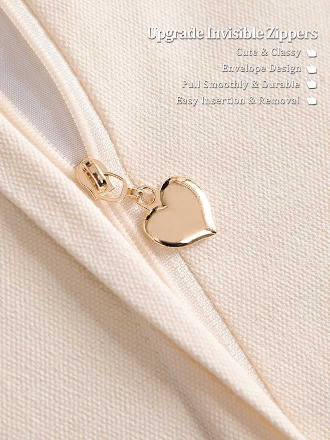 - INVISIBLE ZIPPER CLOSURE: Designed with a smooth heart invisible zipper, these cushion covers provide a seamless look while ensuring easy insertion and removal of pillow inserts. our high-quality zippers enhance durability and smoothness compared to ordinary zippers, ensuring struggle with a faulty zipper.