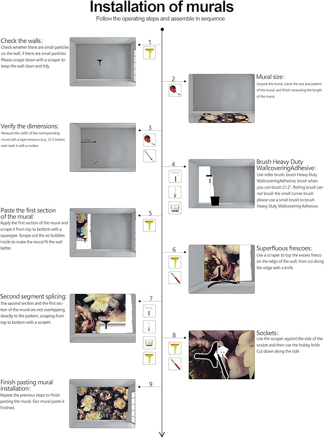 - Construction Installation: Each part of the mural is marked with a serial number underneath, no overlap, direct docking, in order. (Please refer to installation instructions)