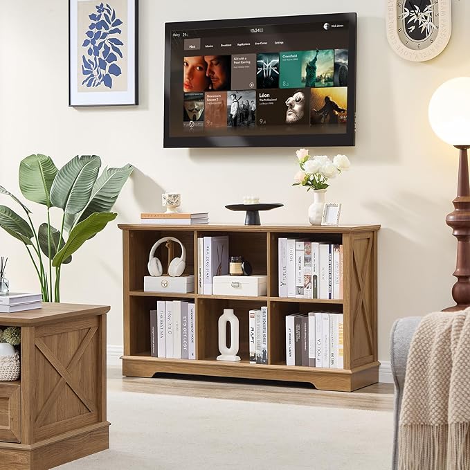 - 6 Cube Storage Space: Our farmhouse-style cube storage bookcase features six spacious compartments, perfect for organizing books, decor, baskets, and more. The rustic X-pattern side panels add a charming touch, seamlessly blending with our existing furniture collection to create a cohesive home decor set. Ideal for living rooms, bedrooms, offices, or closets, this bookcase combines functionality with timeless design