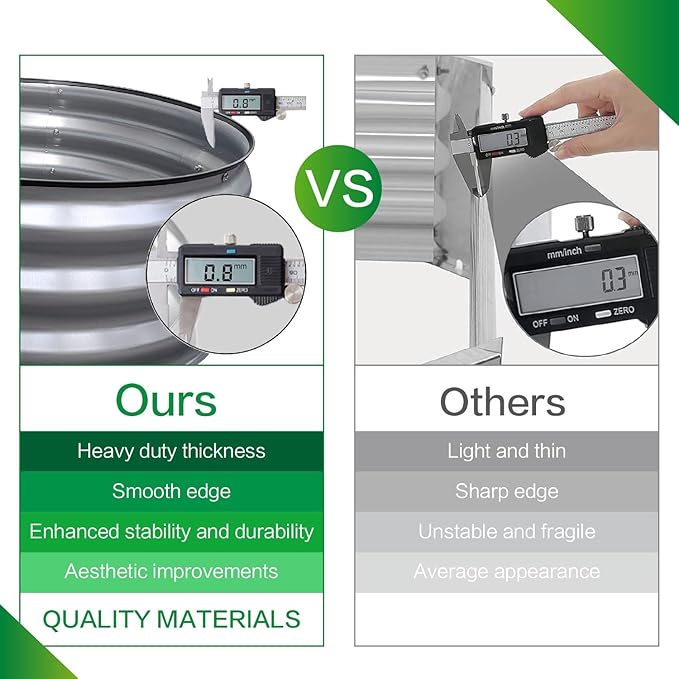- DURABLE GALVANIZED MATERIAL: GARDMAX outdoor raised garden beds are made from 0.8mm heavy-duty galvanized material, ensuring exceptional longevity and durability. It is more resistant to high temperatures and freezes, making it very suitable for outdoor use. And this metal will survive the elements for decades, but when you're ready to replace it, the metal is entirely recyclable