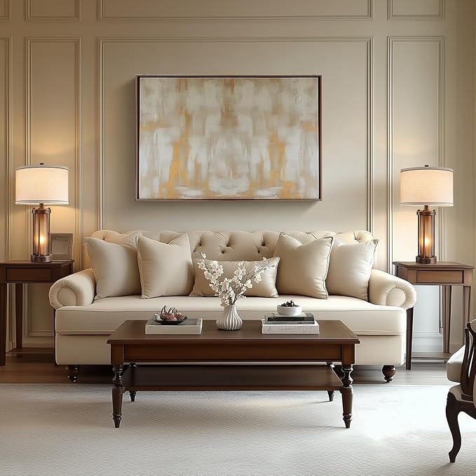 - Includes 2 LED Bulbs: The living room table lamp comes with 2 free bulbs, including one E26 LED bulb and one E12 night bulb, save time buying additional compatible bulbs! No flicker, no dizziness, emits a steady soft daylight to protect your eyes.