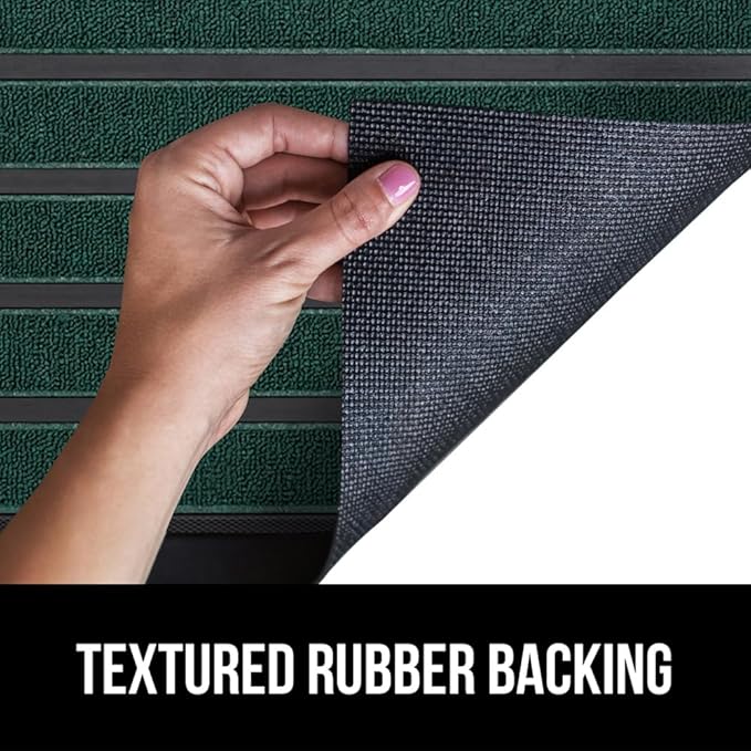 GORILLA GRIP 100% Waterproof All-Season WeatherMax Doormat US Designed Natural Rubber, Stain and Fade Resistant, Low Profile Indoor Outdoor Door Mats, Easy Clean Patio Mat, 23x35, Green Stripe