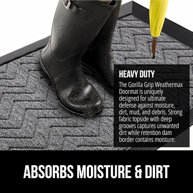 - THE ORIGINAL WEATHERMAX ALL SEASON DOORMAT: Gorilla Grip's Original WeatherMax doormat is built tough with a heavy duty, yet soft and flexible construction; deep grooves, beveled rubber border and retention dam help capture dirt, debris and moisture