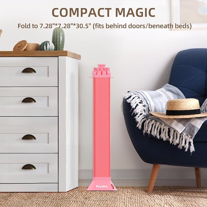 - 【Wheeled Convenience & Chic Aesthetics】 Glide the Fendia drying rack with wheels anywhere—its smooth-rolling design saves your back! The 4-leg drying rack ensures stability even with heavy loads, while the chic pink finish elevates laundry rooms or balconies. Compact enough for tiny homes yet sturdy enough for king-sized comforters, this heavy duty foldable drying rack is a must-have for busy households, urbanites, and travelers.