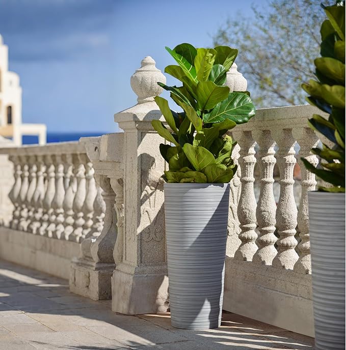 GreenShip 27" Tall Planters, Set of 2 – Black Outdoor Planter for Front Porch & Tall Plants, Weather-Resistant, with Drainage Hole & Rubber Plug (No Plants Included) (Light Gray)