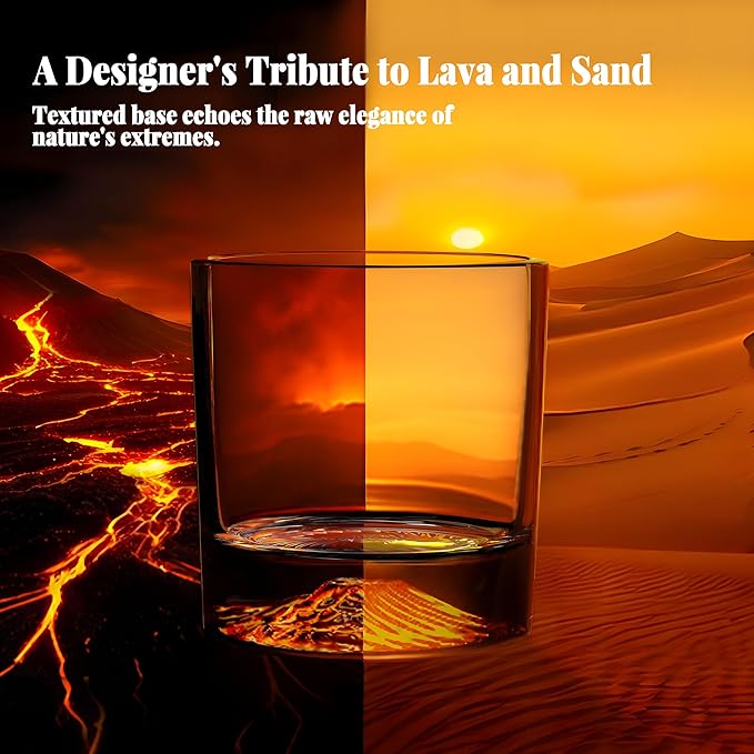 - Sahara Desert Design: Each whiskey glass is an artisan statement—its sahara deserta base carved with precision, dancing with light and depth as your spirit swirls. With thickened walls and a solid base,offers impeccable balance and strength,and perfect fit for large ice cubes.