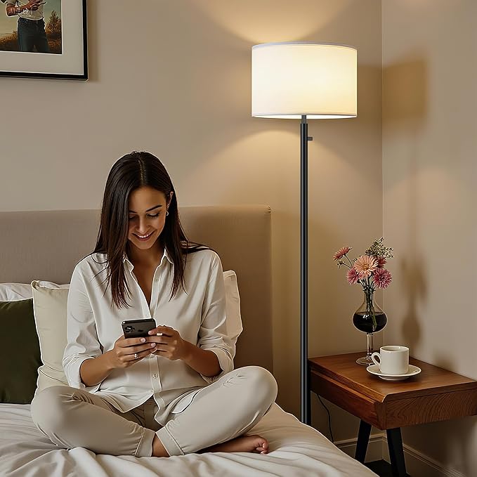 - Soft ambient light: The linen lampshade effectively diffuses the bulb's light, casting a comfortable, soft glow. Whether in the living room, bedroom, or nursery, this living room floor lamp complements any decor seamlessly and enhances the ambiance.
