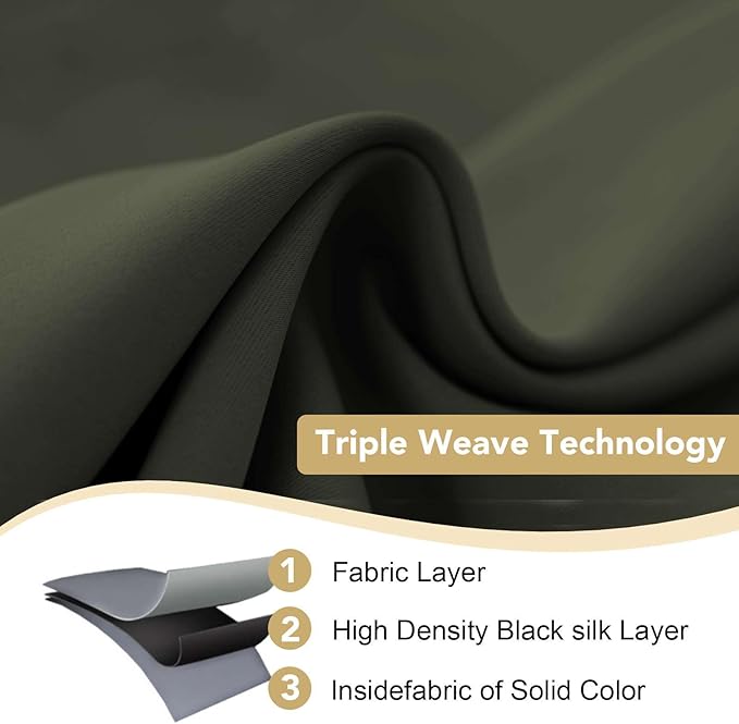 - MULTIPLE FUNCTIONS: These soft and durable curtains are made by innovative technology durable yarn, high performance on room darkening, thermal insulated, noise reducing, energy saving / efficiency and privacy protection