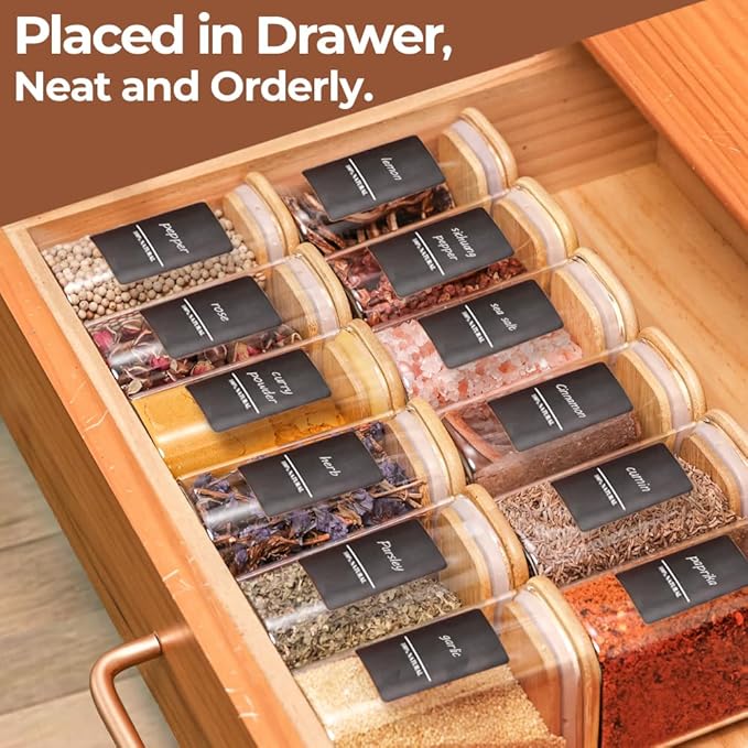 - Organize Bulk Spices Easily: 8oz spice jars with labels help you ditch those mismatched bags and seasoning bottles, less mess in your kitchen; Perfect for organizing bulk herbs and spices like paprika, granulated garlic, or dried minced onion